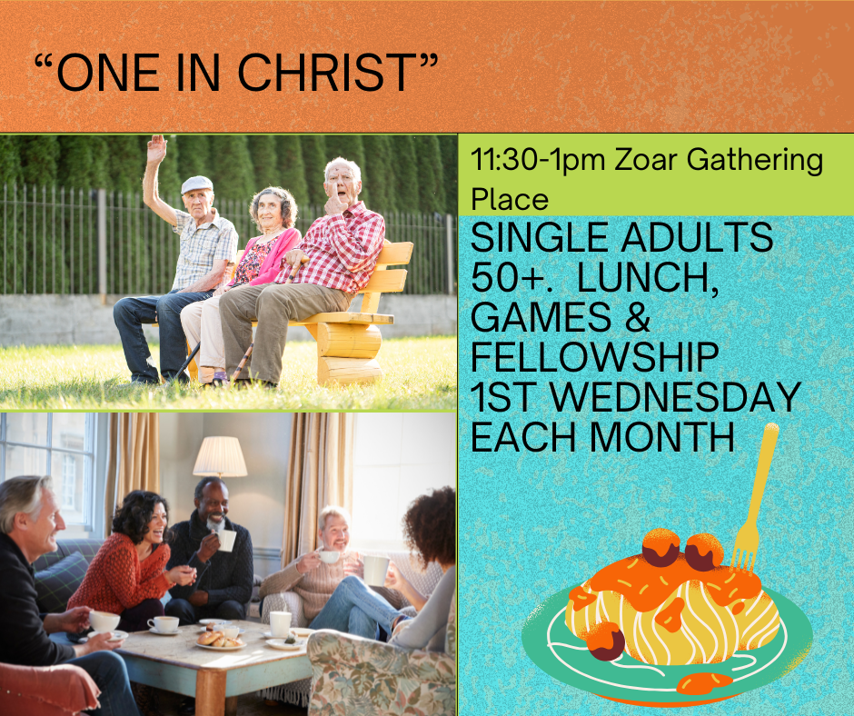 Are you a 50 or older & single? Want to enjoy lunch, games & meet new friends? Zoar invites you to a new group! First